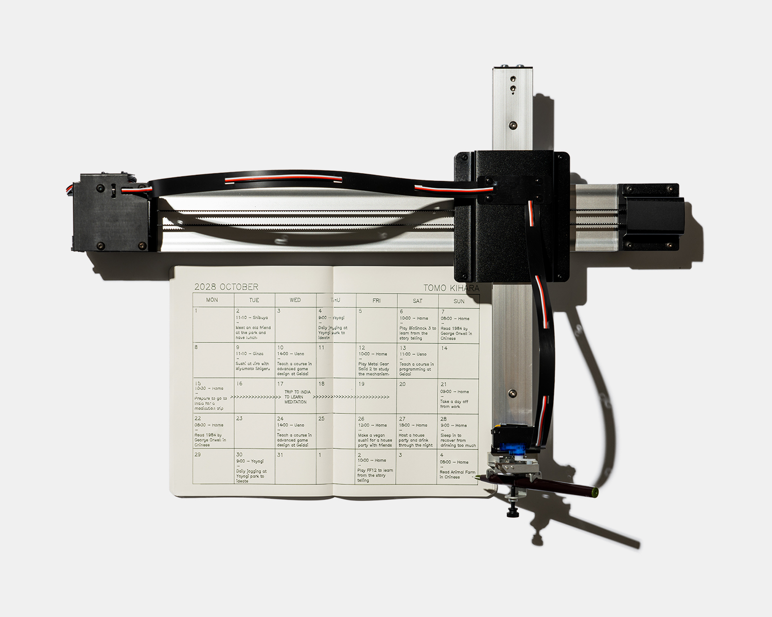 2023年8月24日から29日までTHINK OF THINGSにて行われる特設ワークショップの参加者は、この日記を実際に作ることができます。ご自身の名前が表紙に箔押しされた、あり得るかもしれない未来の1ヶ月が記された世界に1つしかない日記を手に入れませんか?
